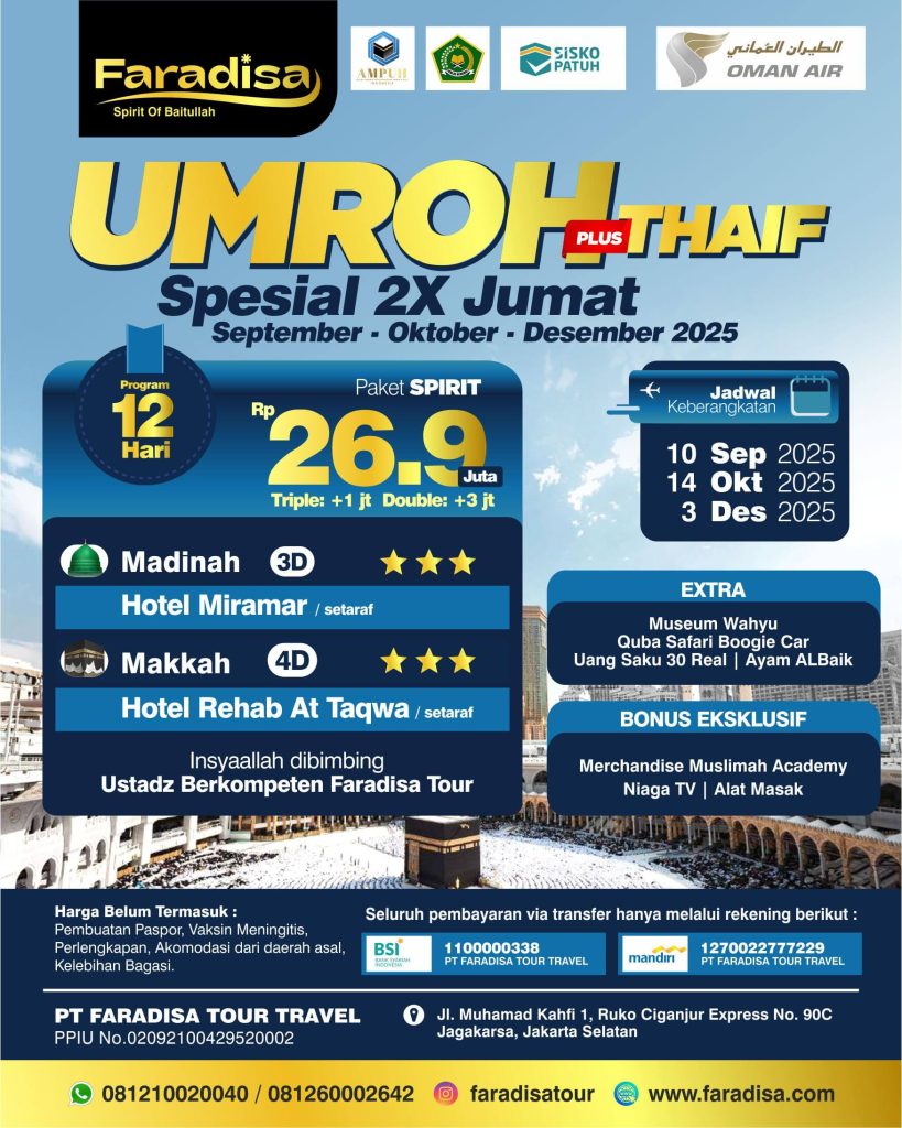 PROMO Umroh Hemat Spirit of Baitullah, 12 Hari, 2x Jumatan Plus Thoif (10 September)